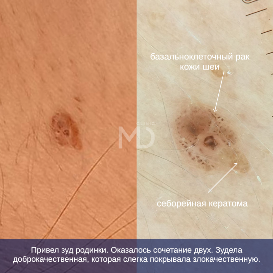 В рамках хирургической дерматологии специалист осуществляет удаление доброкачественных новообразований кожи — кератом, папиллом, ксантом, сирингом, бородавок и контагиозных моллюсков с применением механических, радиоволновых и лазерных методик. Выбор метода удаления определяется индивидуально с учётом типа новообразования и дерматоскопической картины, места расположения «родинки», наличия признаков малигнизации, образа жизни пациента и его предыдущего опыта. Для обезболивания используются местная анестезия кремом (особенно комфортная для детей и пациентов с противопоказаниями к инъекциям) или инфильтрационная анестезия.